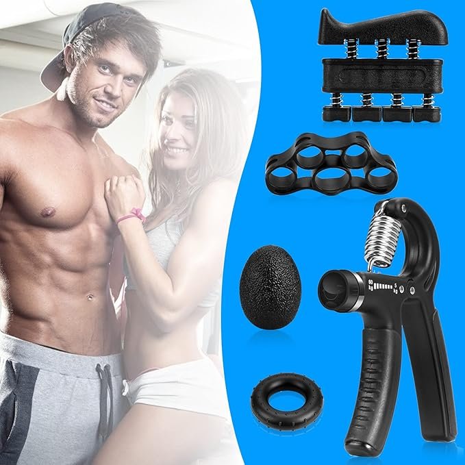 مجموعة تمارين تقوية قبضة اليد والساعد – 5 قطع: تحتوي على جهاز تقوية قبضة اليد (قابل للتعديل من 11 إلى 132 رطلاً)، وجهاز تمرين الأصابع، وشريط مقاومة لتمديد الأصابع، وحلقة تقوية قبضة اليد، وكرة تخفيف التوتر. سهلة الحمل، يمكنك وضعها في جيبك. حتى في عصرنا سريع الخطى، يمكنك تخصيص وقت للتمرين أو تخفيف التوتر. تصميم رياضي كلاسيكي! ستعجبك بالتأكيد.